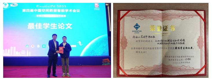 2023年4月13-15日,由ACM SIGSPATIAL中国分会和ACM SIGMOD中国分会主办的第四届中国空间数据智能学术会议SpatialDI 2023在南昌泰耐克国际大酒店成功召开。在大会举办的学生论文竞赛中,澳门美高梅 博士生徐海江荣获最佳学生论文奖(是本次该奖项唯一获得者)。