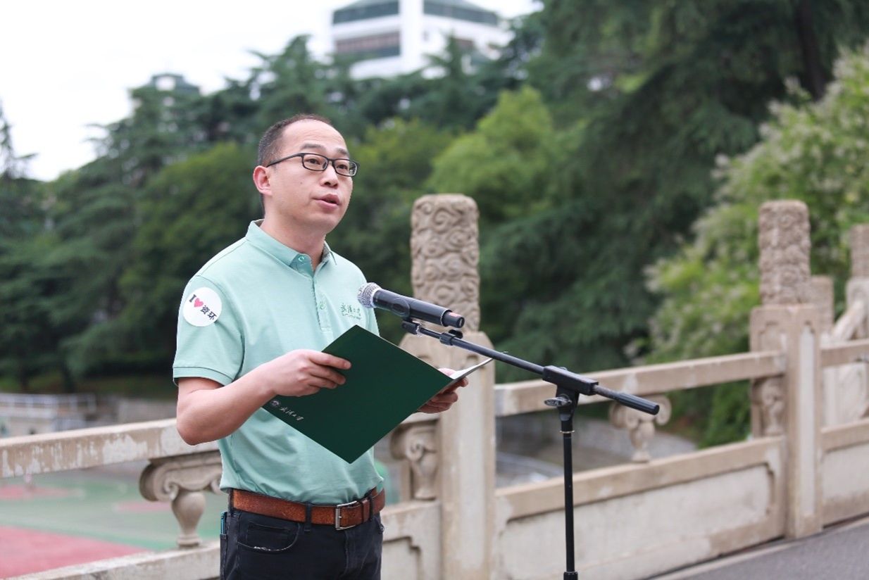 “经济全球化带来的资源短缺、环境污染、生态破坏等问题愈演愈烈。在这个关乎全人类生存的全球性问题上,中国始终向世界展现着大国担当;大国使命的背后,是生生不息的人才和科研力量;而武大资环人是这股力量当仁不让的领军者,更是全面落实国家‘推动绿色发展,促进人与自然和谐共生’决策部署的中坚力量。”学院副院长、环境科学与工程系教授邓红兵作为教师代表,讲述武大资环人在生态文明建设中的责任和使命。