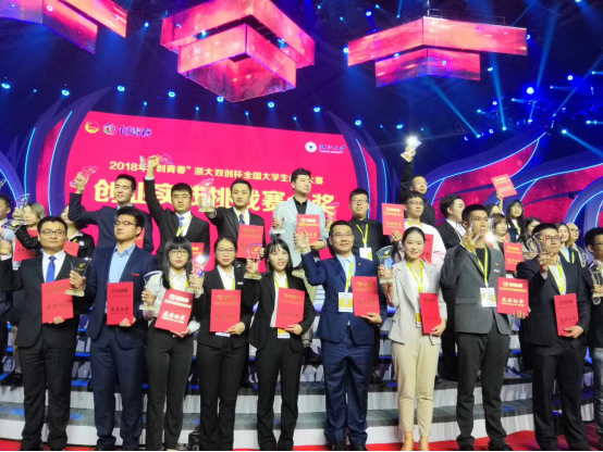 本次大赛,学校推荐的六个项目全部进入终审决赛,最终摘得三金三银,以全国第四的成绩捧得优胜杯。