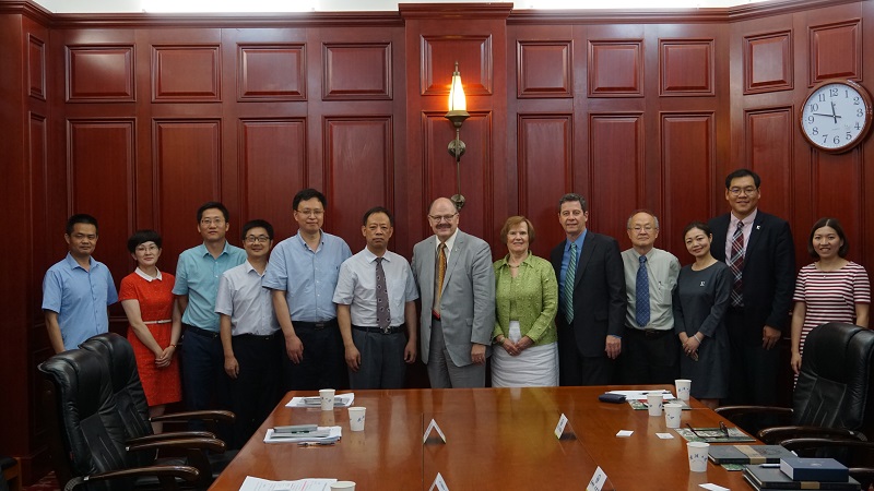 6月27日,美国东密歇根大学校长詹姆斯·史密斯一行六人访问我校,商谈校际合作。副校长李斐会见来宾。