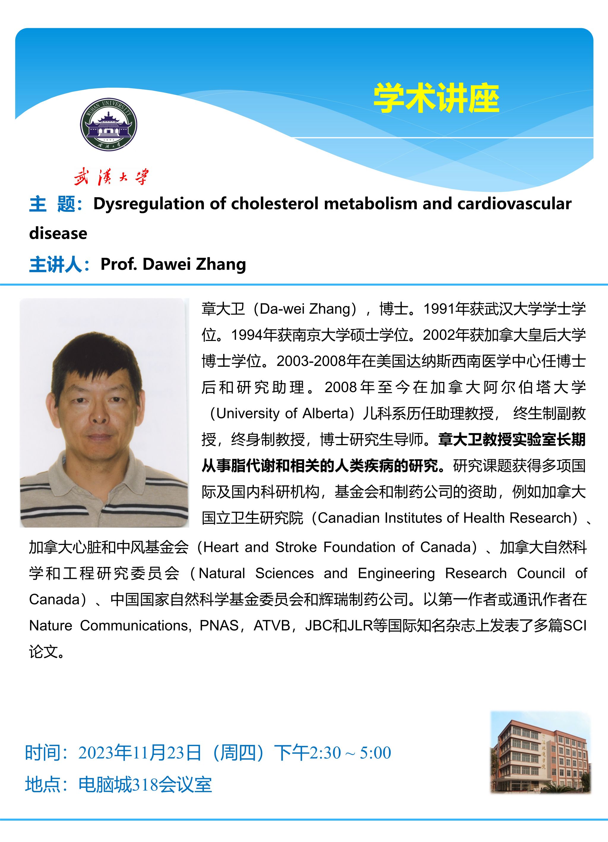 11月23日下午 章大卫教授 Dysregulation of cholesterol metabolism and cardiovasculardisease