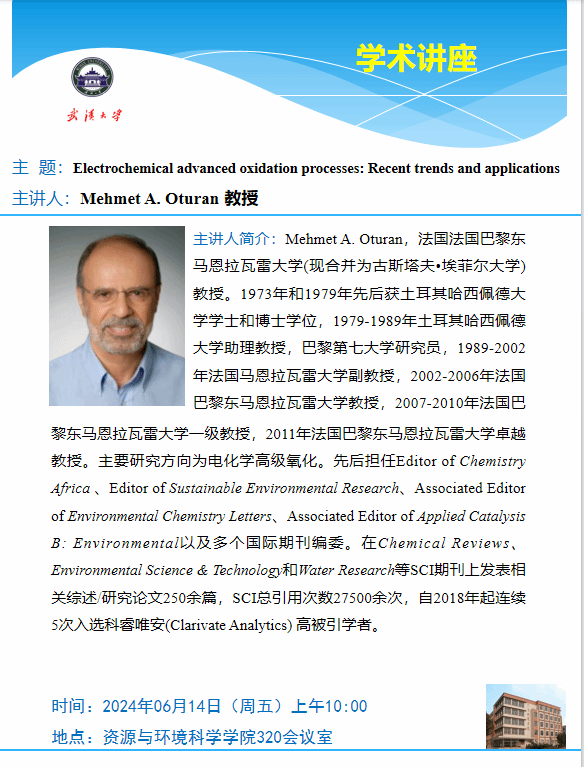 2024年06月14日(周五)上午10:00——Electrochemical advanced oxidation processes: Recent trends and applications