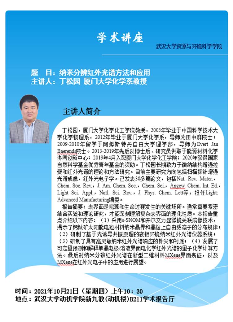 2021年10月21日丁松园教授:纳米分辨红外光谱方法和应用