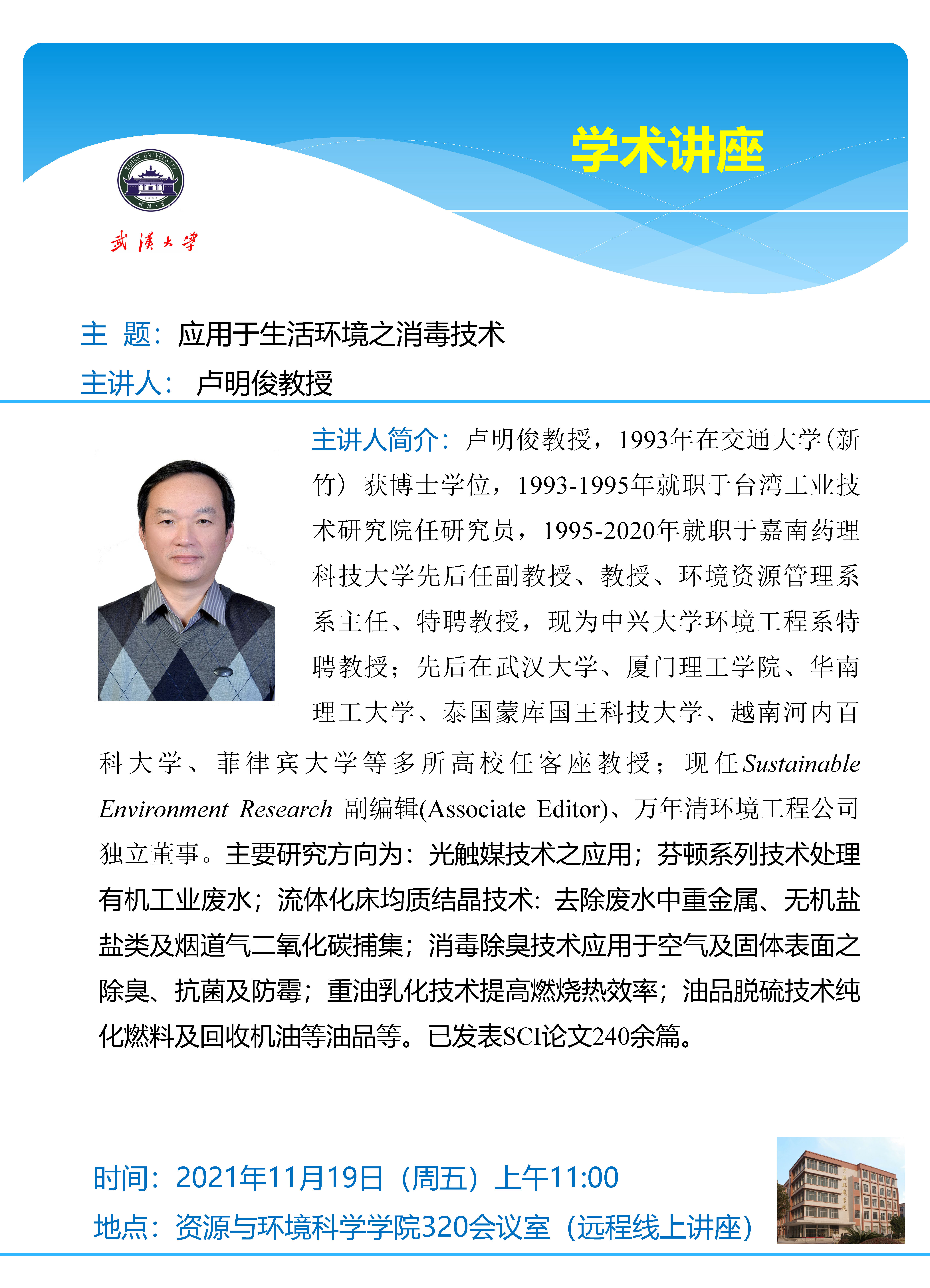 11月19日上午中兴大学卢明俊教授:应用于生活环境之消毒技术