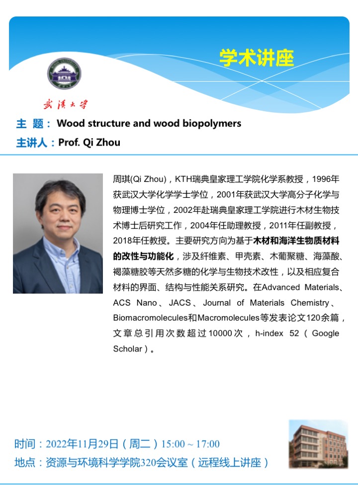 【学术讲座】Wood structure and wood biopolymers