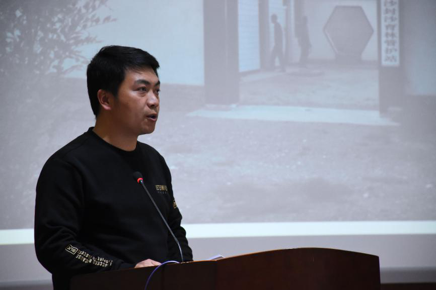 图6 第二代治沙人代表、八步沙林场职工贺中强作报告