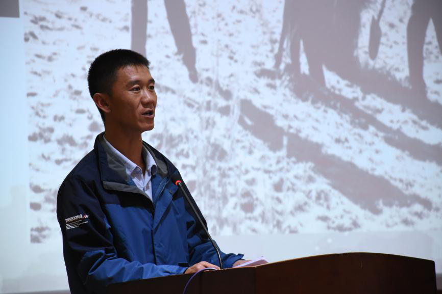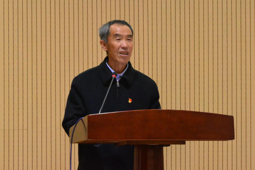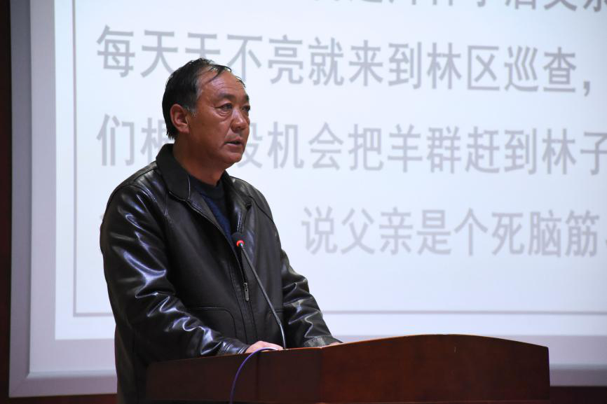 图7 第三代治沙人代表、八步沙林场管护员郭玺作报告
