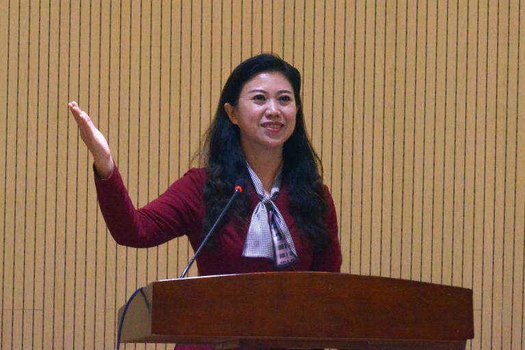 最后,武威市广播电视台记者袁洁作了题为“写在大漠上的壮美诗篇”的报告。袁洁多次走进八步沙、了解八步沙、探索八步沙,见证了第一代治沙人“黄沙不退人不退,草木不活人不走”的信念与精神,见证了第二代治沙人开创的农林结合新路子与入股分红新模式,见证了八步沙由荒漠变绿洲的奇迹般的过程。“八步沙治沙人用智慧和汗水书写着人与沙的动人故事,唱响了绿色发展、永续发展的时代壮歌!”治沙人的精神感动了袁洁,也激励着她以共产党员的担当,以新闻工作者的身份更好地传播“时代楷模”先进群体事迹而奋斗。