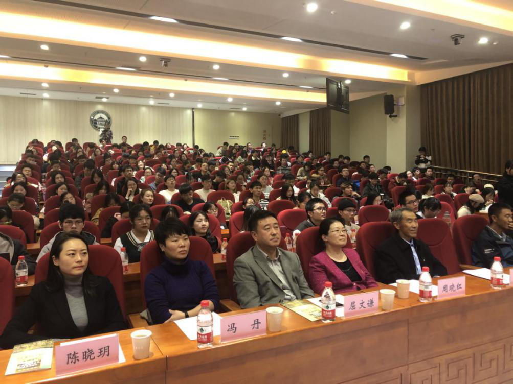 绿舟环保协会的学生代表上台,给宣讲团五位成员献上美丽的鲜花,全场响起持久不息的掌声。