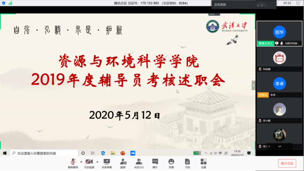 2019年度专职辅导员(团干)考核述职会在腾讯会议平台开展