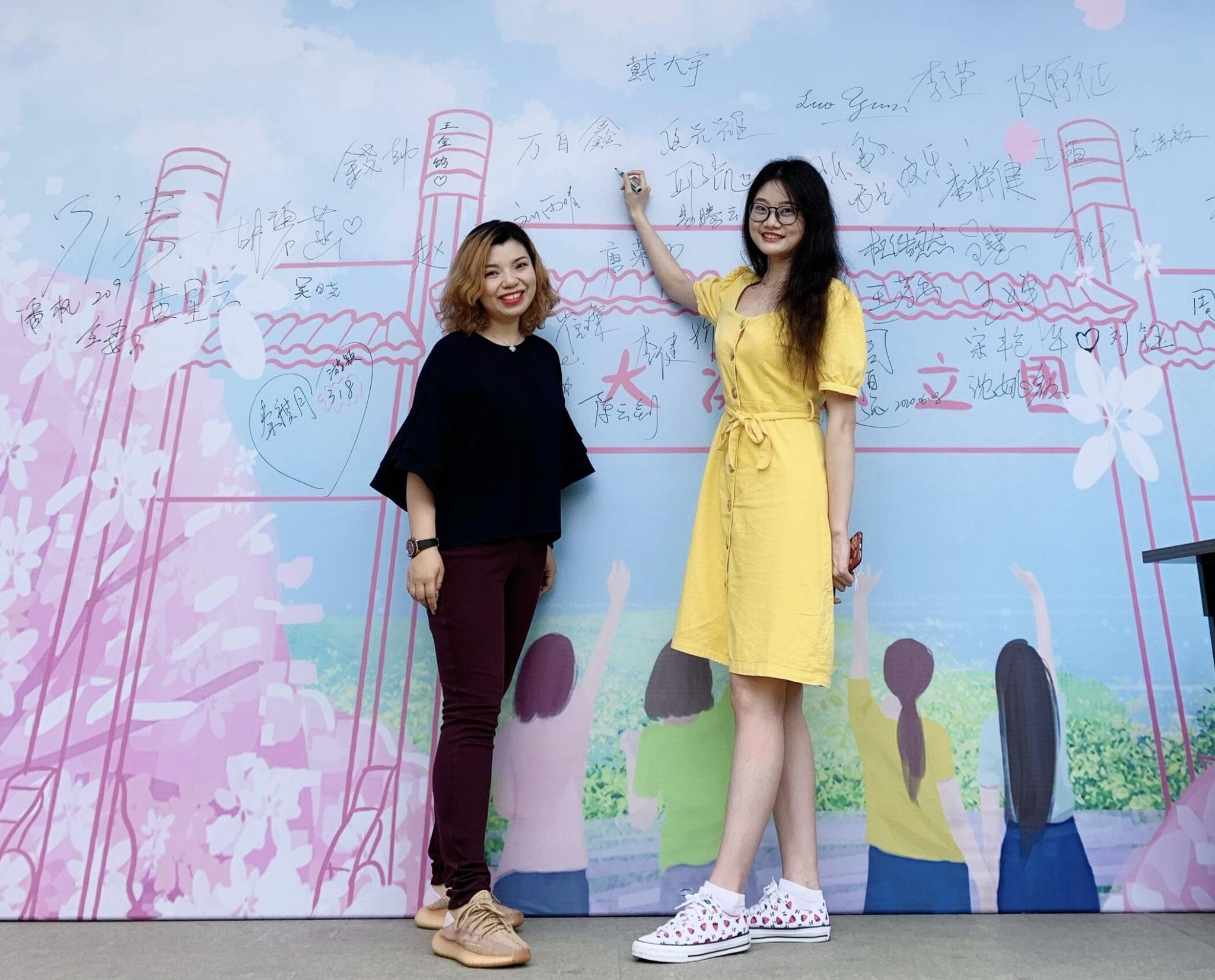 (学院门口留言板前与老师、同窗合影留念)