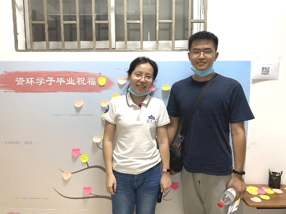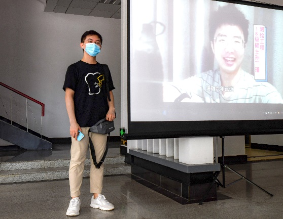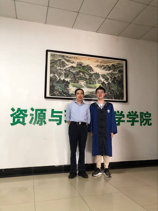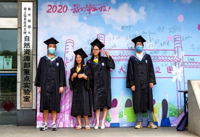 (2018级测绘工程硕士毕业生周泊远与毕业视频合影)