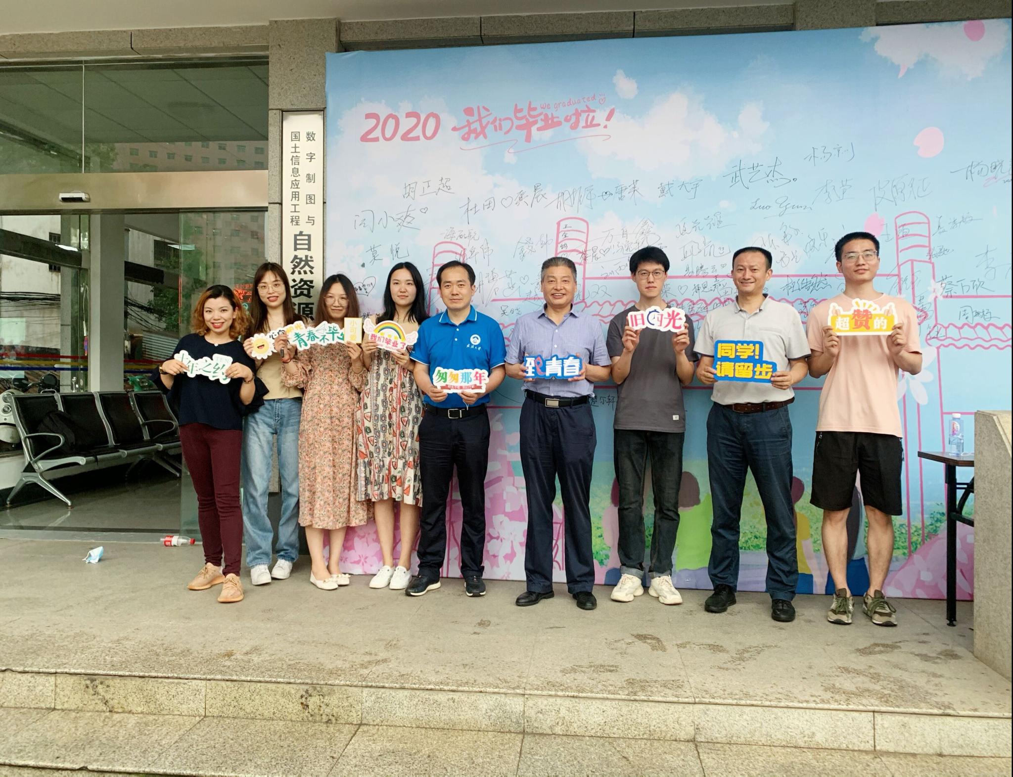 接下来几天,返校工作持续有序推进。同学们不仅在学院门口留言板上郑重地留下签名纪念,还邀请导师、辅导员一同合影,表达对学院这几年悉心培养关照的感谢。关于那些亦师亦友的感念、同窗伙伴的情深,春日缤纷、梅操电影、信操汗水、热干面、小龙虾等等的记忆纷至沓来,熙攘于每一位毕业生学子返校离“珈”的脚步。