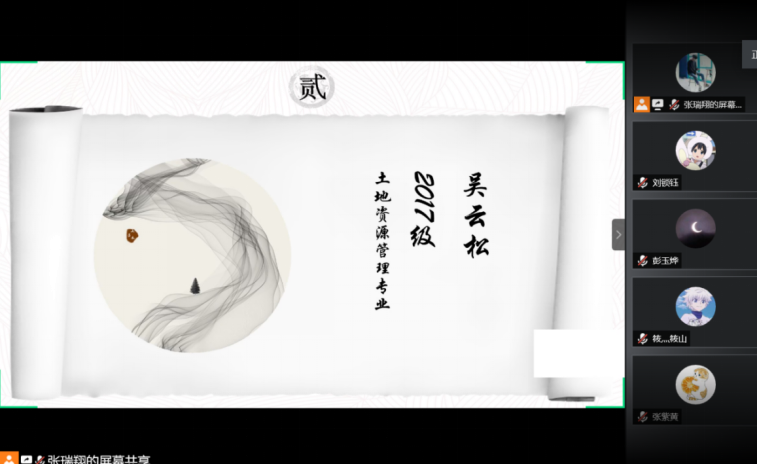 2018级环境科学专业本科生刘泽豪、2017级土地资源管理专业本科生吴云松、2017级土地资源管理专业本科生余姝颖和2017级环境科学专业本科生罗甜同学进行经验分享。