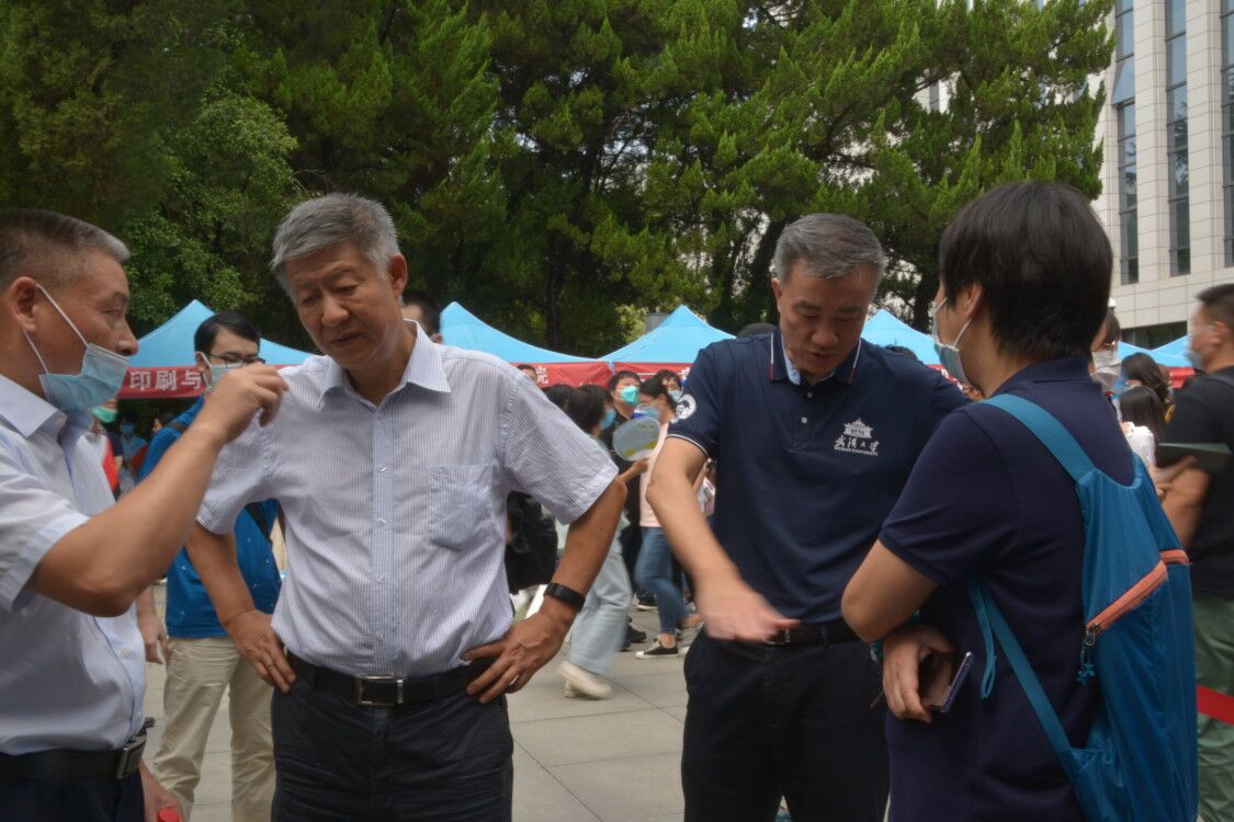 党委书记韩进、副校长吴平、周叶中来到信息学部迎新点,看望慰问新生和迎新工作人员,与大家亲切交流。