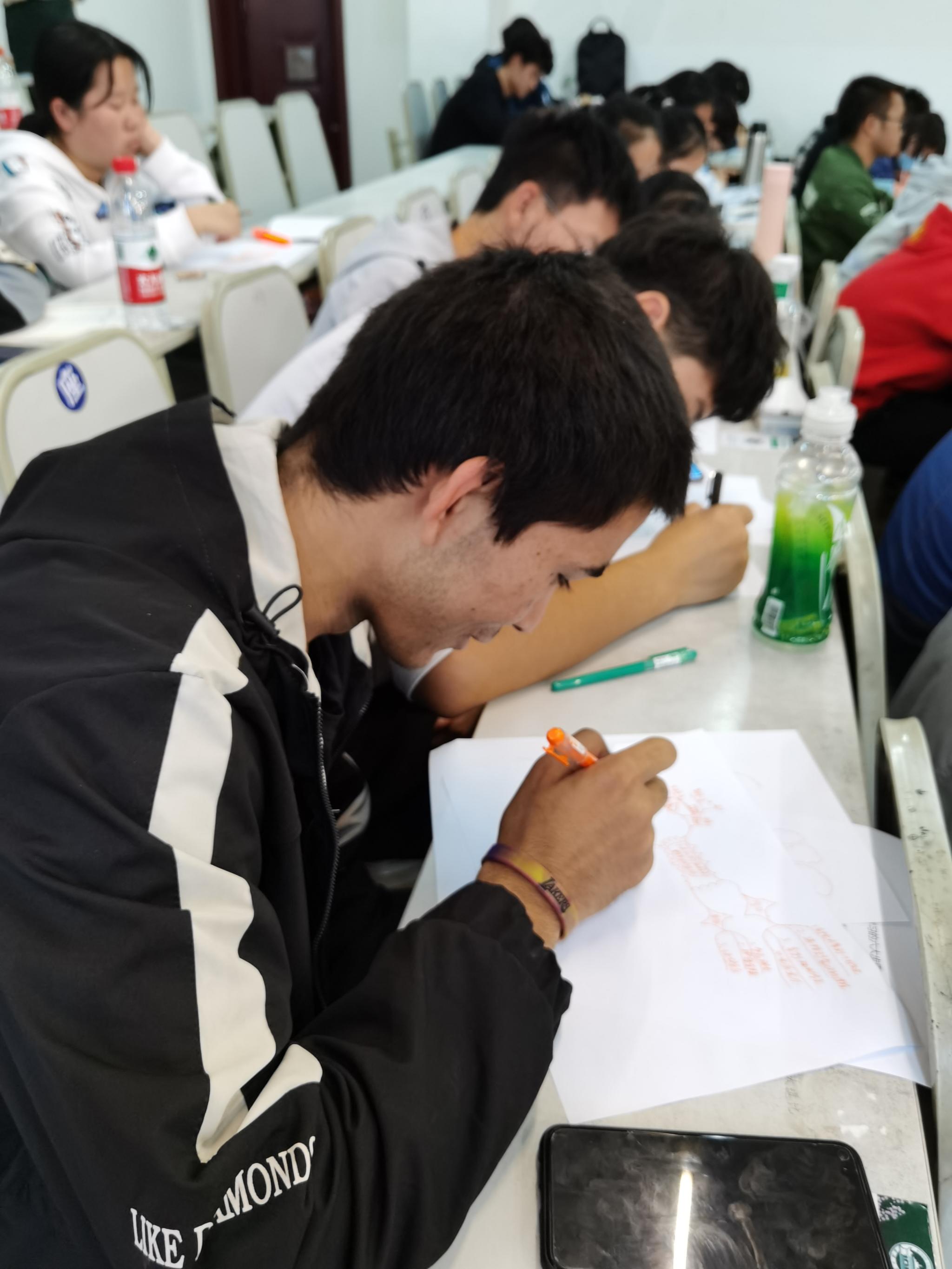 最后,在“牛刀小试”环节,同学们以“自我介绍”或“四年后的自我介绍”为话题,在二十五分钟的时间限制内绘制了自己的思维导图并进行展示,亲自动手实践,运用所学知识,更好地理解了思维导图。