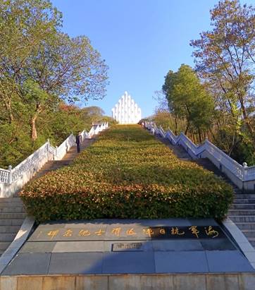 9时许,队伍抵达园区,开始参观活动。牛头山山顶矗立着中山舰遇难者纪念碑,纪念碑由25根石柱组成,每一根石柱都代表一位烈士。25根剑直指南天的雕塑柱,象征着在金口战役英勇迎战日本飞机,不幸阵亡的25名中山舰战士。武汉保卫战雕塑群也给很多同学留下了深刻印象,战士们英勇冲锋、高举大刀,向来犯的日寇砍去,展现了我中华儿女面对外来侵略者所展现的视死如归、同仇敌忾的意志与保家卫国的决心。除此之外,园区内许多地方都让同学们铭记屈辱历史,厚植家国情怀。