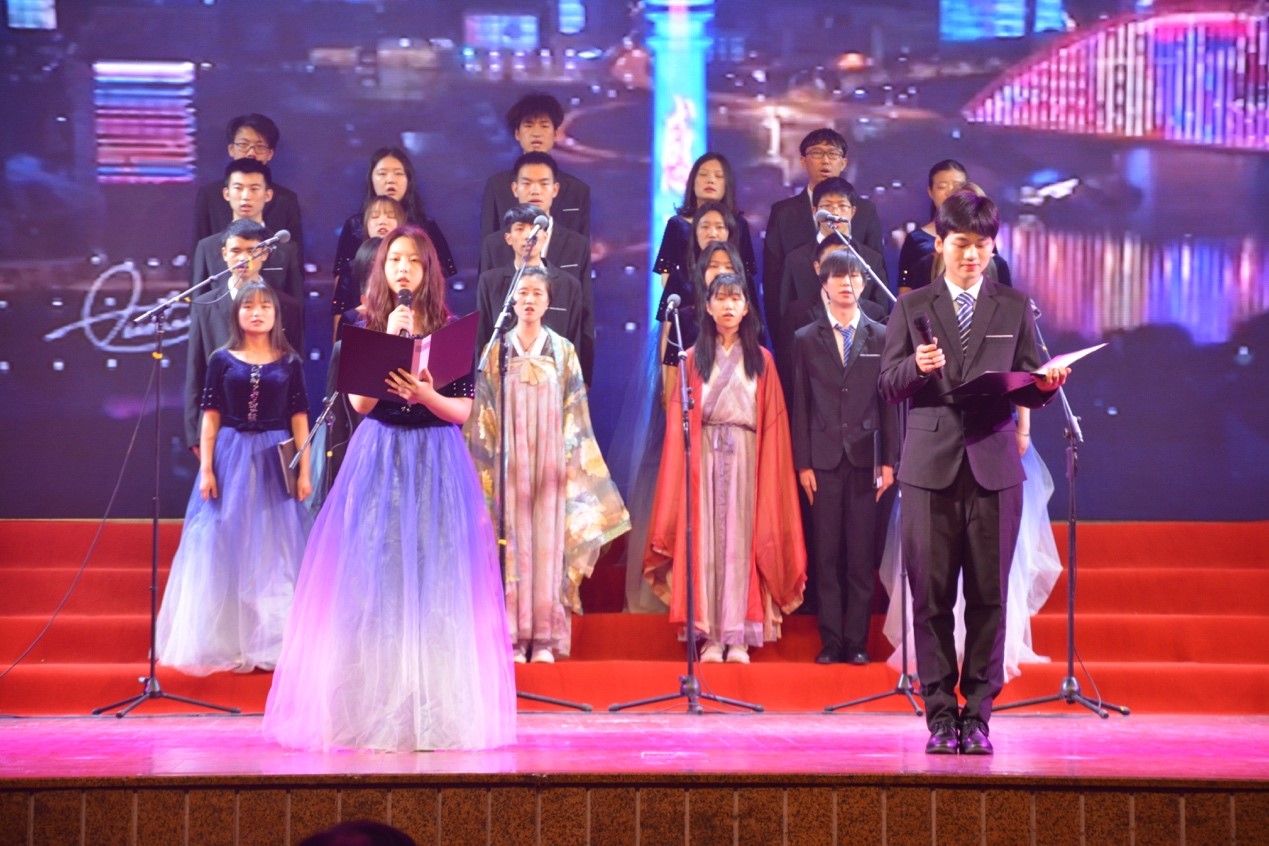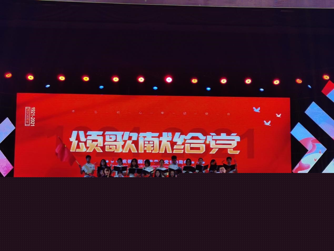 接下来出场的是2019级地基、地信一、地信二团支部,他们带来的节目是《党的赞歌》。我为党骄傲,我为党自豪,党永远是国旗上的一颗最闪耀的星。是党钢铁的意志,有力的臂膀举起祖国的彩虹,把幸福的曙光捧到了人民心中。