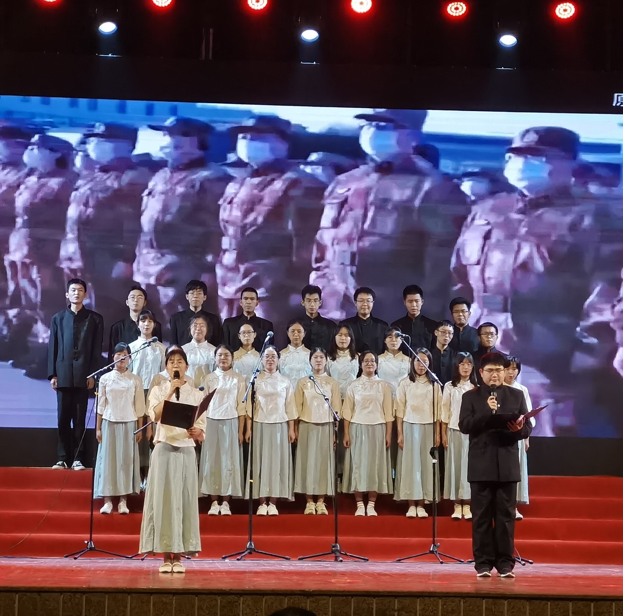 参加大赛的最后一支队伍2020级201班带来《踏浪前行风正劲,不负韶华争朝夕》。时间是万物的尺度,刻写下中国人民闯关夺隘的不平凡历程。当银鹰刺破苍穹,烟花照亮天空,人们比以往任何时候都更加真切地感受到国家的繁荣富强,也比以往任何时候都油然而生一种自豪感。