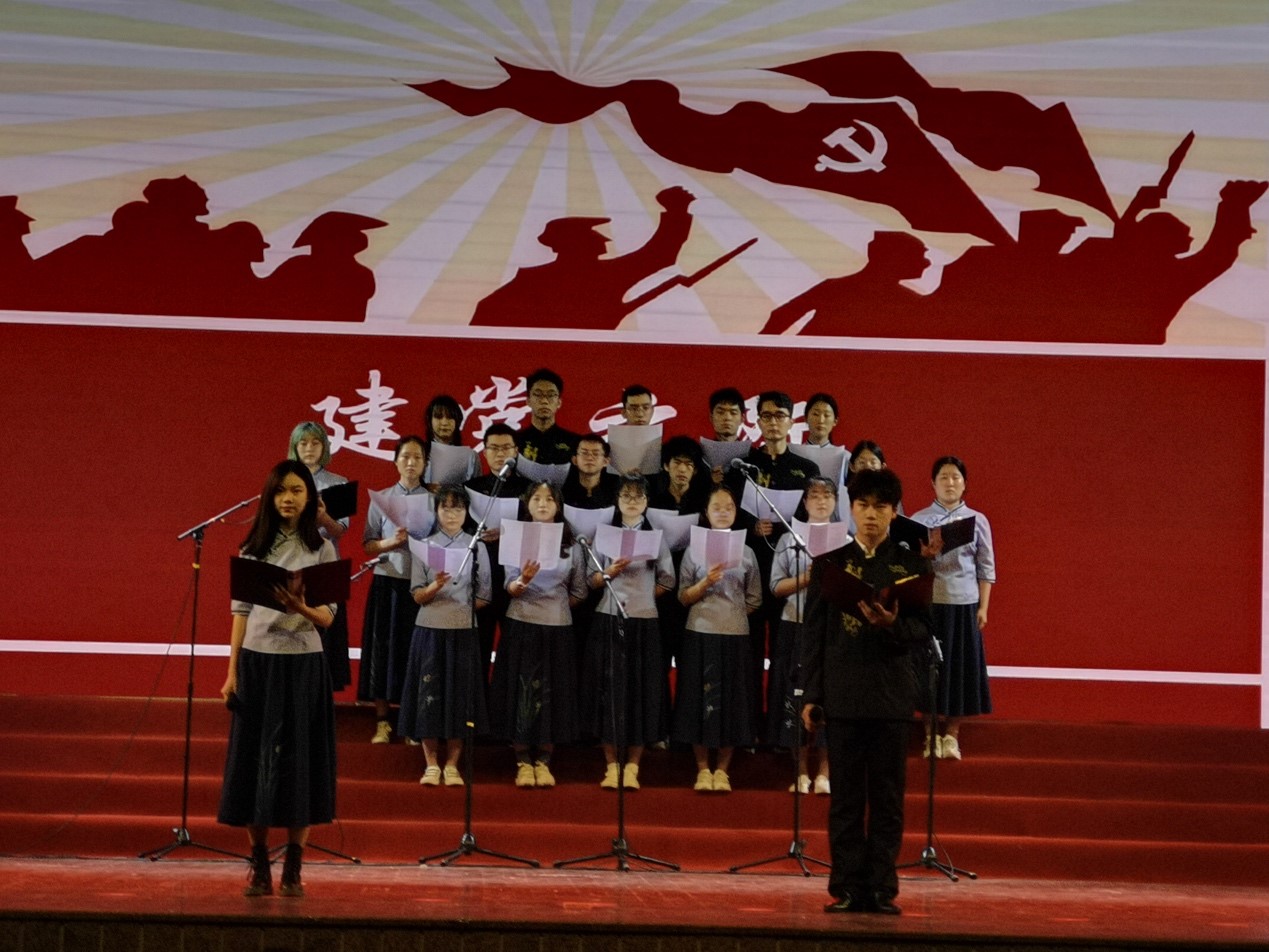 紧接其后的是2019级土管、地信三、地信四团支部带来的《为党献上祝福》。百年风雨兼程,百年峥嵘岁月,舞台上的那一抹中国红,今天愈发夺人心魄。对党的一声声祝福也在每一位观众心中响起:愿党永葆生机,永葆党的先进性,愿祖国欣欣向荣,繁荣昌盛,愿人民生活富足,幸福安康。
