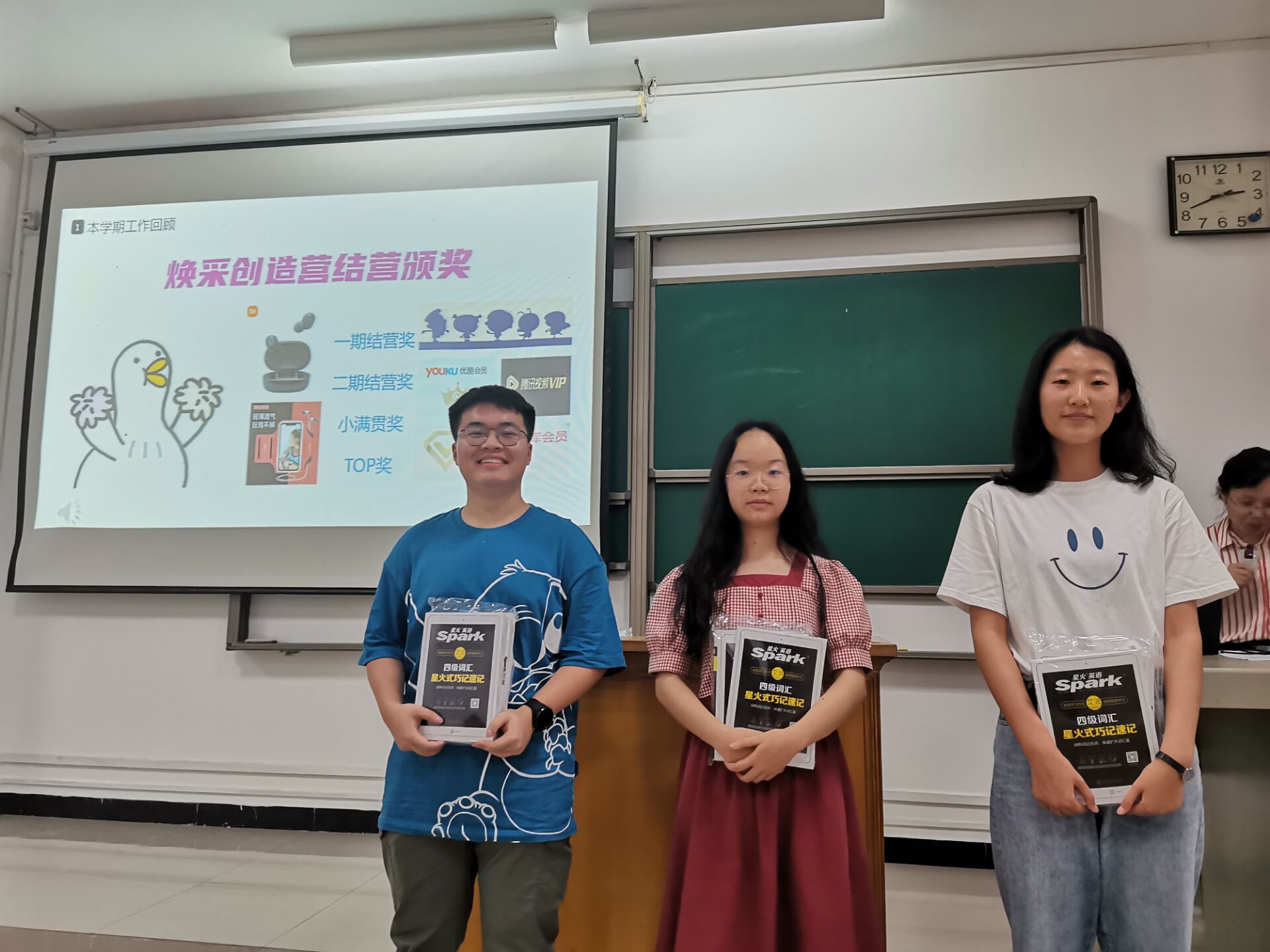 2021年6月10日下午,一年级计划之焕采创造营结营颁奖仪式在信息学部2-201教室隆重举行。本次活动在3月底启动招募,共有70多名同学报名参加,经过两期各21天的挑战打卡,最终有近50名同学完成了一期打卡,18名同学完成了两期打卡,还有4名同学完成了累计5个组别以上的打卡!在前后两期共42天的打卡时间里,四个打卡群里消息踊跃,完成打卡的同学们凭借顽强的毅力坚持,只为看到自己的改变,一起见证了彼此的焕采一新。
