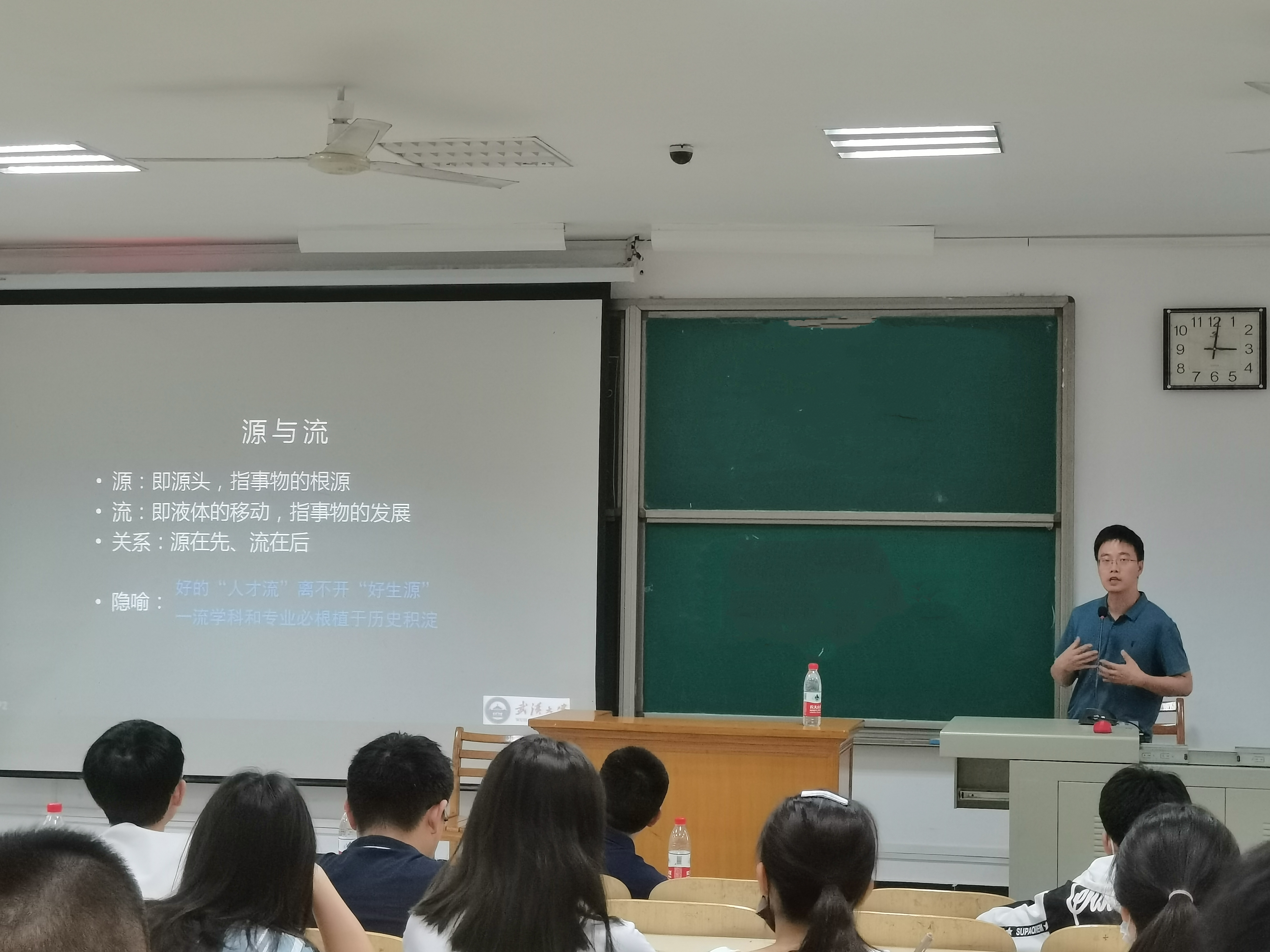 首先是来自地理信息与地图科学系的副主任张翔副教授进行专业介绍,他以地信专业的历史沿革、课程设置与人才培养开始,介绍了专业优势,又以在概论课中讲到过的“智慧城市”介绍专业发展,在人才培养方面,他说学院每年都有将近一半的学生选择地信,并且毕业发展方向很广,本专业设置的目标是培养学生空间思维,提升地理素养,发扬智慧计算与地图美学。