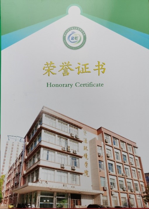 的优秀院友。定制的荣誉证书正反面都有院徽,背面有学院大楼照片,这是每一位资环学子最熟悉的地方。