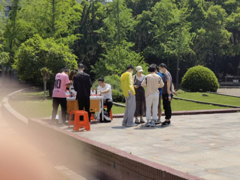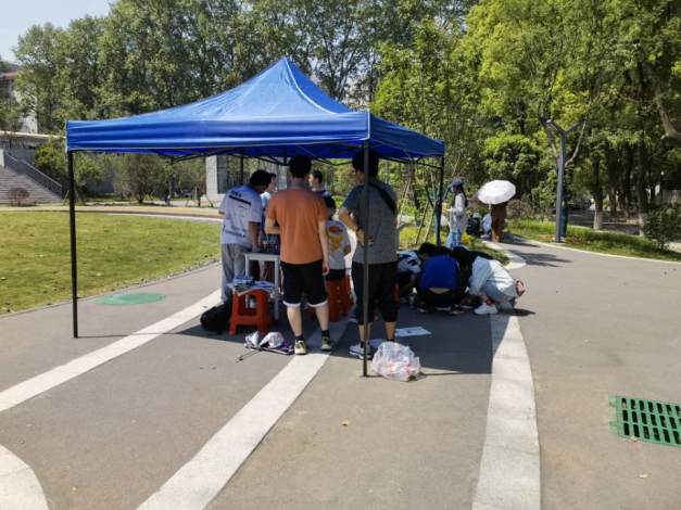 4月10日上午,春光明媚,绿意盎然,整个信息学部的道路上热闹非凡,一顶顶蓝色的雨棚支起,一队队人马集结,随处可见一边行走一边交流、举起手机拍摄校园植物的同学们,第十七届珞珈绿色文化节开始了!