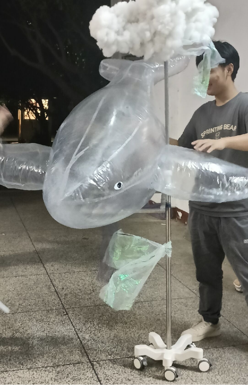 赵楠茜: 在确定了底稿之后,我们便开始了材料的采购和制作。本次服饰制作我们分成了四个小组,由每个小组负责特定的两到三套衣服,通过人员的分配和精准的分配工作让整个制作的过程比较井然有序。就我们小组而言,遇到的困难主要是制作一些大型的道具,例如假山、翅膀等。在制作过程中,大家群策群力,试验了多种方法材料后最终克服了这些问题。