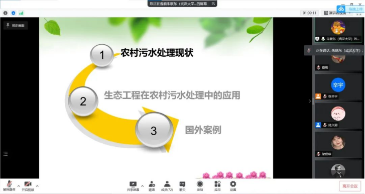 朱联东老师为我们介绍农村污水生态处理技术,让我们了解农村水污染现状,增加我们对水污染处理的了解,提高大家对于水污染的关注度,帮助我们深入了解污染现状及治理,引发我们对于环境问题的进一步思考。
