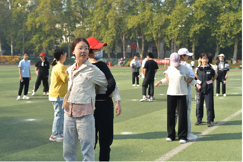 本次院运会还设置了许多趣味项目,“复兴号”就是其中倍受关注的一个环节。它由八名队员组成一个小队,队员们在比赛时需要通过手握住同一根长绳连接成一个纵队,绕过立杆障碍物,以最短的时间通过赛道。在队员检录完成后,裁判员发出开始指令,队伍两两上场,同学们着急地齐步往前奔跑,又因为各种意外挤做一团,大家的脸上都洋溢着灿烂的笑容,在欢声笑语中结束了这场比赛。