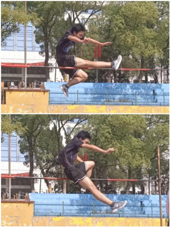 同时进行的还有立定跳远比赛。男子跳远比赛中,吴炫匡同学第一跳就跳出了2.79m的好成绩,无人超越,最终赢得冠军。而在女子组的比赛中,曾妤晨同学在跳出2.20m的好成绩后,在最后一次跃起中又超越自己,以2.25m的成绩强势赢下冠军。