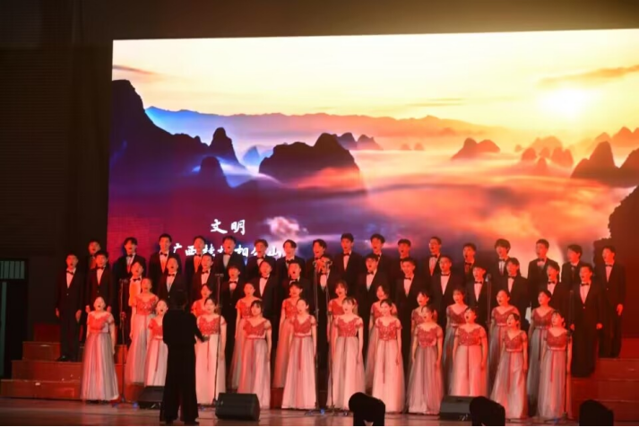 与国网院联合合唱团的男队员身着黑色西装,系着黑色蝴蝶结领巾,雄赳赳气昂昂地踏上舞台,女队员提着白色裙摆,身着一抹中国红,轻盈上台。踩青时的欢快,年轻时的懵懂清纯,在一句句轻快的歌声里铺展开来,一曲青海民歌欢快,带动人的心弦,让观众也不住地随着歌声舞动。队员们的情感也随歌声进入高潮,一句“呀嘿”加上一声清脆的鼓掌,结束了这首《花儿与少年》。歌曲虽已终,少年在花儿中藏入的情却愈加绵长。