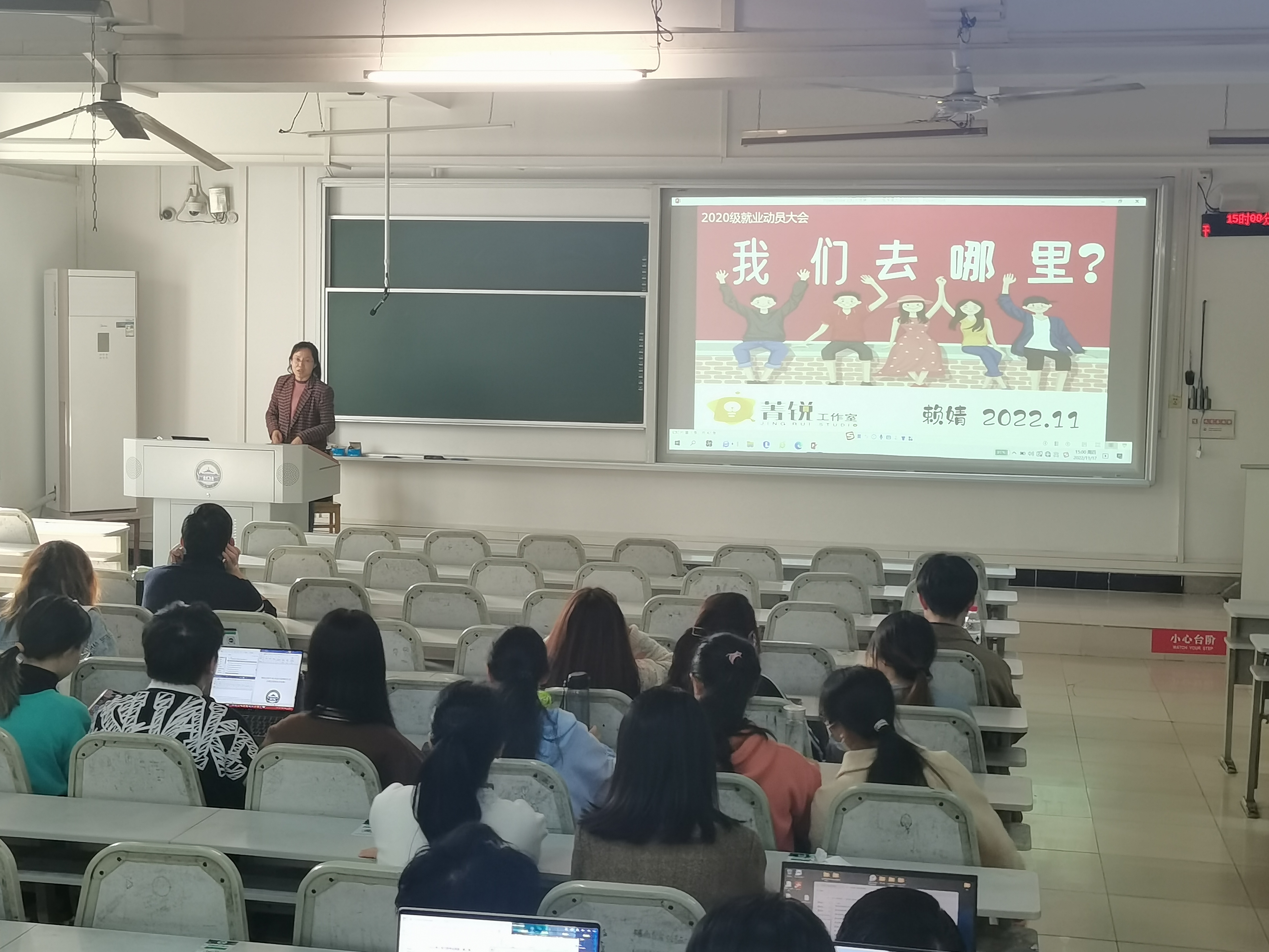 大会分为三个部分。第一部分以就业为主题,辅导员赖婧老师以近5年学院的本科生就业数据为依据,向同学们直观展示了不同就业出路的模样,并结合过往学生的就业故事来对每个就业方向中的注意事项给予提醒和提供参考建议,帮忙同学们提升就业意识、认清就业形势、锻炼就业能力。