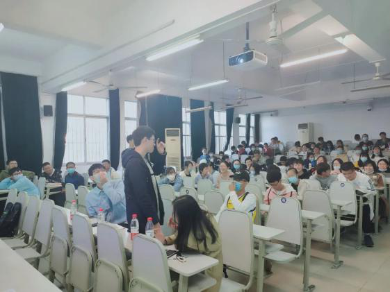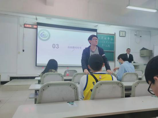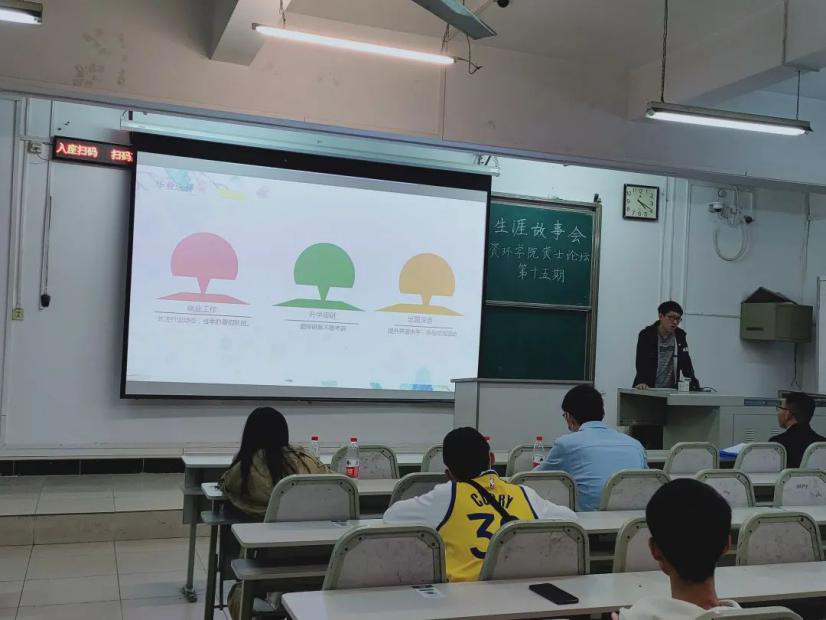 第四位进行介绍的是土地资源管理专业的吴金涛同学。首先是关于土地资源管理的专业介绍,吴金涛同学分别讲解了毕业之后四个可能的去向:国土行业、地产行业、测绘行业、互联网行业。其次,在日常学习方面,他强调了成绩的重要性,课堂学习和课后学习都需要投入精力。除了就业工作,大学毕业后还有读研和出国两个方向。他着重介绍了在大学期间需要做的准备,例如创新创业项目和竞赛,同学们可以积极参与。最后他简单谈了谈人生规划选择,用概率论的知识告诉同学们,可能性为零的事件不是不可能发生,并激励同学们不要过于在意外界压力,而要为自己的目标努力。