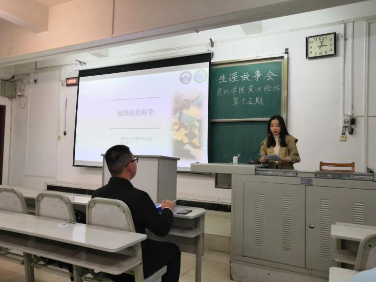 第一位讲解的是地理科学专业的汪凌君同学。她先向同学们介绍了地理信息专业的发展、本专业的主要课程以及自己对地信的理解,再介绍了本专业的所需要掌握的知识,即以地信为核心、数学、物理计算机、人文地理等同步学习的知识体系。最后她对同学们关心的就业方向做出介绍,分别有公务员、事业单位、互联网、教师等几个方向,并希望2020级的同学们在本科的学习生活中能认识到学习的重要性,在专业方向的选择上能以兴趣为主导做出适合自己的选择。