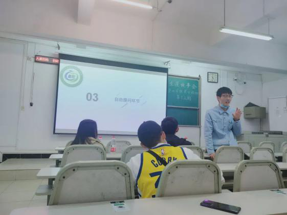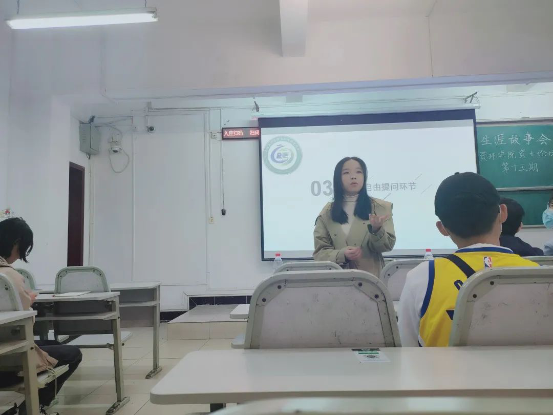 分享环节告一段落,接下来是提问环节。同学们十分积极,提出了各式各样的问题。一位同学询问了土地管理专业的薪资问题,吴金涛同学从不同行业进行了解答。也有同学询问了考研的过程,他也给出了相应的建议。关于地信专业,有同学询问如何选择未来方向,汪凌君同学强调了兴趣的影响,而薪资也可以是一个考虑方面。同样也有同学关心环境工程专业的薪资,李卓同学简要介绍了行业情况。