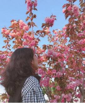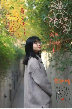 同学们寻找相册里含有各自学校春日元素的照片进行拼接,约定拍照姿势,以PS的形式将其同代表各自学校的春日元素的照片(如樱花照片、海棠照片等)进行拼接制作。也有同学在图片上进行二次涂鸦创作,期盼早日“摘下”口罩,早日回到校园,拥抱春天,履行我们与春天的“约定“。