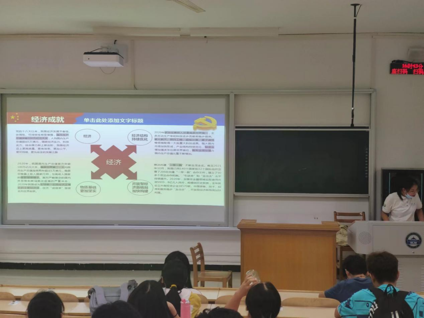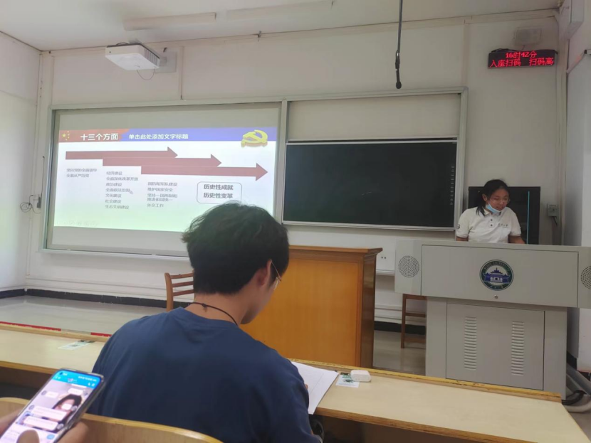 2021级环境工程团支部团支书郭晓萌带领大家进行理论学习。简单的开场白过后,郭晓萌带大家分别从经济建设、民生建设、生态文明建设等角度详细回顾了共产党带领中国人民所创下的伟大成就,增强了班集体的凝聚力,激发了青年团员的创新意识和创造活力。