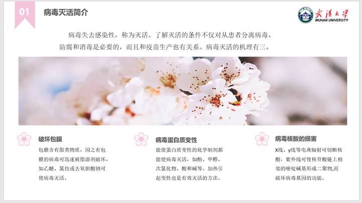 在病毒灭活材料方面,同学们分别介绍了病毒灭活的各种机理、现有的各种病毒灭活材料与生化灭活方法等等。