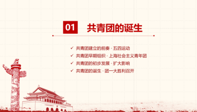 共青团在历史上共经历了两次建立、两次改名、一次改造,中国共青团的名称也随之变化。从社会主义青年团到中国共产主义青年团,从青年救国会到新民主主义青年团,每个名字都标志着团的新历史发展阶段的到来。通过短片《牢记百年团史,展青春之样貌》回顾了共青团的主要历史阶段和发展路径,带领大家深入学习团的成长发展史。