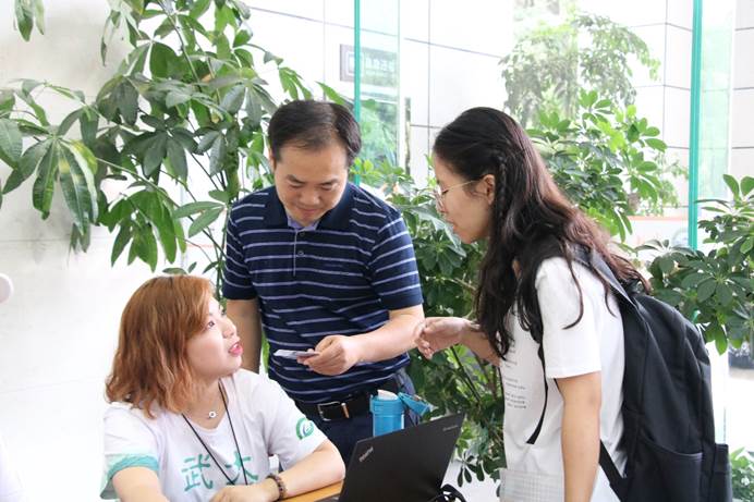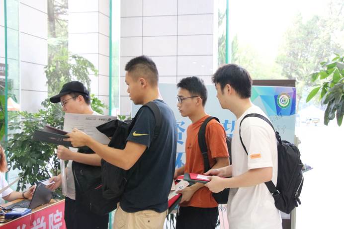 上午8点,学院迎新工作在信息学部图书馆一楼正式开始。此次迎新工作受到学院领导的高度重视,学院党委书记刘兴国老师、学院党委副书记雷起宏老师亲临现场指导迎新工作,看望报到入学的新生,了解新生报到注册情况,学院研究生辅导员梅菲老师带领院研究生会成员、新生服务志愿者紧密配合,分工合作,有条不紊的开展迎新工作。