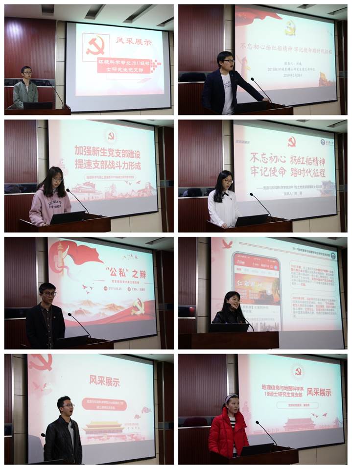 本次研究生党支部风采大赛包括初评和现场展示两个环节。经过对各党支部提交的工作案例材料进行初步评选,共有八个党支部进入现场展示环节。在现场展示的过程中,每个党支部都在短短的时间内对本支部的特色活动和成员风采进行了充分展示。土地资源管理专业2017级硕士研究生党支部展示了歌曲《我们都是追梦人》的手势舞,地图制图学与地理信息工程专业2017级硕士研究生联合党支部结合学习强国APP进行了历史重演……各党支部的风采展示形式多样,各具特色。同时各支部还在学习贯彻习近平新时代中国特色社会主义思想和党的十九大精神,学习领会习近平总书记关于加强党的政治建设、教育工作等重要论述下的背景下,对 “不忘初心扬红船精神,牢记使命踏时代征程”的主题进行了微党课展示,充分体现了澳门美高梅