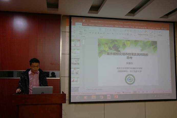 朱联东教授结合自身的科研经历,针对微藻的废水治理及资源化课题,分别从研究意义、研究方向与成果、大规模培养方式、当前存在的问题点等几方面进行了介绍,内容生动具体,同学们认真学习并给予了积极响应。