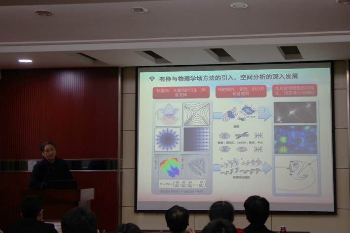 首先,艾廷华认为,基于GIS的视角,道路网、河流网、街道网等是空间数据分析的重要类型,在大尺度上的模式分析、流量计算、空间异质性判断,都与场模型有关,建立网络空间线性剖分场是十分有必要的。场模型视角下的网络表达,不仅可以更好的模拟线路网、利于路径属性的差异表达,还可以弥补传统栅格化拓扑关系被忽略的缺点,是栅矢一体化的初步探究。接下来他指出,对于剖分的线性单元根据约束条件可以做不同的权重值修正,基于此所做的网络空间Voronoi图、网络核密度分析等都与实际情况有很好的拟合度,在城市中心度的计算、城市设施可达性分析、城市结构模式识别、城市设施共位模式识别、犯罪共址关系挖掘等方面都有很好的应用。