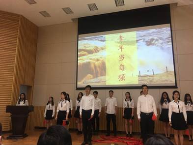 2017级土地资源管理研究生党支部第四个上场。报国须有志,青年当自强。在第一环节风采展示中,先由党支部书记龚晨带来了以“青年当自强”为主题的微党课,激昂的旋律,铿锵的话语,点燃了在场青年学生的斗志。随后,2017级土地资源管理研究生党支部全体党员在金宇宏同学的领唱下,带来合唱《国家》,用歌曲的形式歌唱党和祖国,气势恢宏又充满创意,展现了资环青年学子的家国情怀和精神风貌。表演赢得了在场老师和同学们的阵阵热烈掌声。