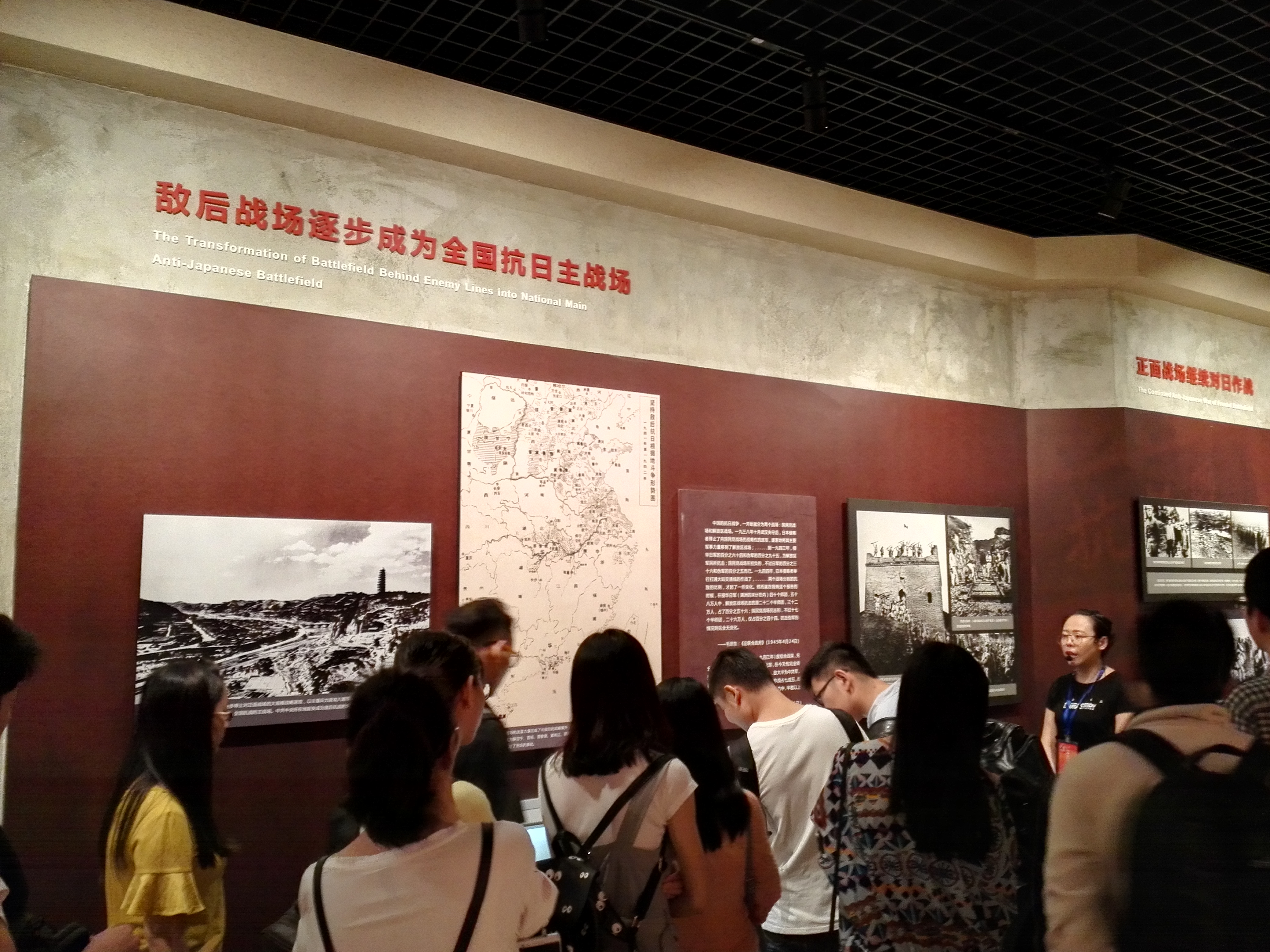 沿着历史的时间轴线,讲解员介绍着八路军武汉办事处在中华民族面临危难的关键时刻作出了辉煌的业绩。在汉虽仅有一年的时间,但其为中华民族取得抗战的最后胜利发挥了十分重要的作用。利用武汉特殊的地理位置,八路军武汉办事处努力发挥中国共产党和八路军、新四军在国统区的联络中枢作用。武汉沦陷前,凡由华中、华南、西南各地到汉向中共长江局汇报或联络工作的中国共产党的负责人和干部,均由办事处秘密接送。此外,八路军武汉办事处负责每月到国民政府军军需署领取军饷,在军政部有关司署领取枪支、弹药、服装、通讯器材及卫生药品、医疗器械等,还到车站联系车皮和其他交通工具,将这些物资分送各地八路军、新四军。不仅如此,1938年2月1日,中共长江局成立了以罗炳辉负总责的招生委员会。之后,八路军武汉办事处就担负起为中国人民抗日军事政治大学、鲁迅艺术学院、陕北公学招收学员、组织输送等具体工作。除了招生工作外,由中共组织和工运、学运、妇运等群众组织介绍的大批男女进步青年,以及一些科技界和文化界的知名人士、国际友人、英、美、法、苏等国记者,也均由八路军武汉办事处安排赴延安等地。这是当时在八路军武汉办事处的工作人员们不畏艰险、辛苦奋斗的成果,更是武汉人民国难当前,紧紧围绕着中国共产党的领导,在抗日战争中流着鲜血、奋起反击的回报。
