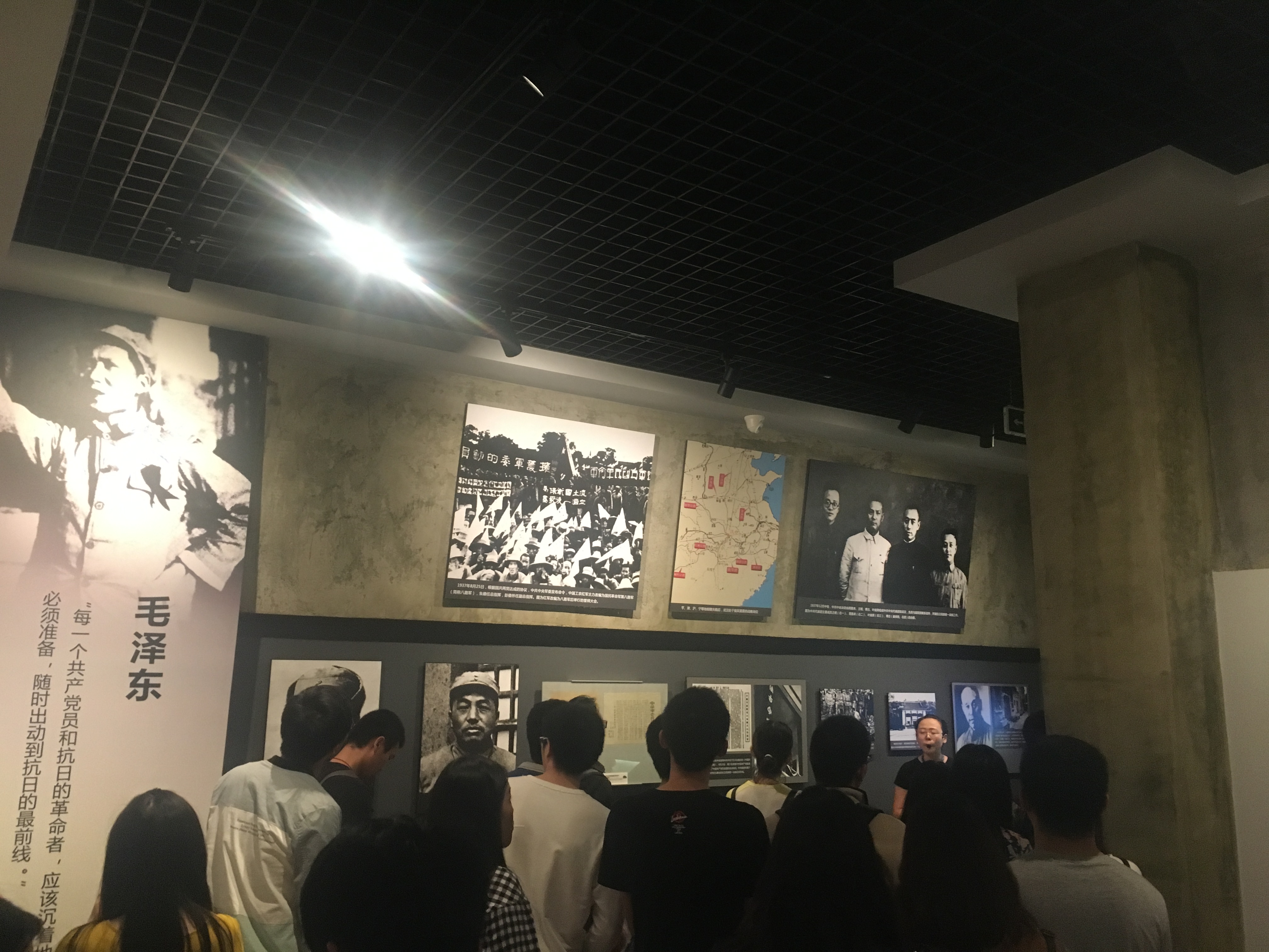 一进展览馆,“大武汉1938”的浮雕伫立眼前,人物栩栩如生,武汉人民奋勇抗争的神态超越了时间与雕刻的束缚,依旧令人触动。紧接着,鲜明的“第一部分:抗日民族统一战线的巩固与发展”将这次展览,拉开帷幕。