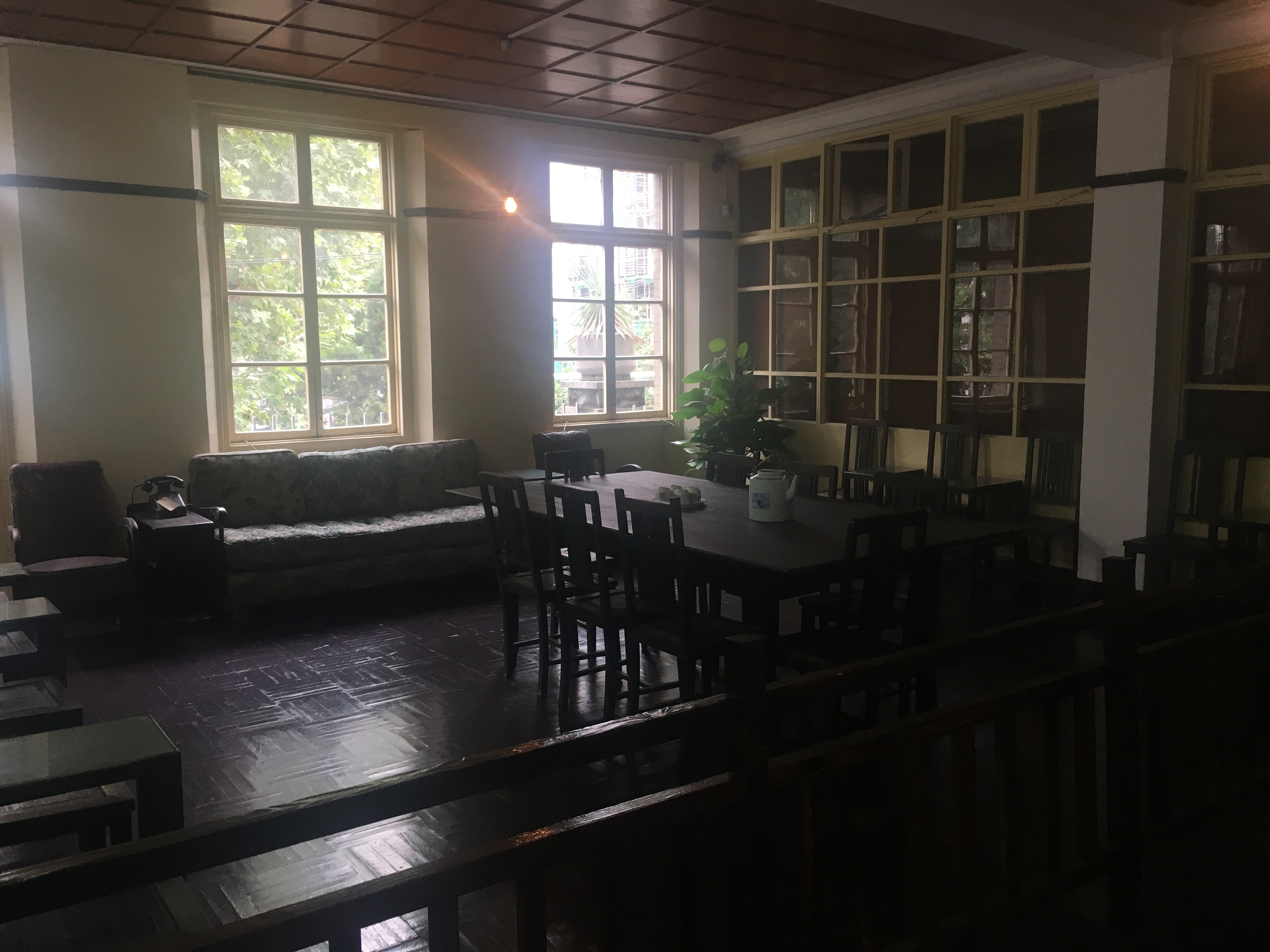 伴着秋风凉爽,我们第一站到达的便是位于汉口江岸区芦沟桥路与胜利街交汇处的汉口新四军军部旧址纪念馆。汉口新四军军部旧址于2002年得以确立并成为文物保护单位。2006年,武汉市人民政府拨专款按原貌修复新四军汉口军部旧址并辟为纪念馆。这是一栋老式两层洋楼,尽管伫立于车水马龙的交叉路口,她却透露着出世的安静与肃穆。