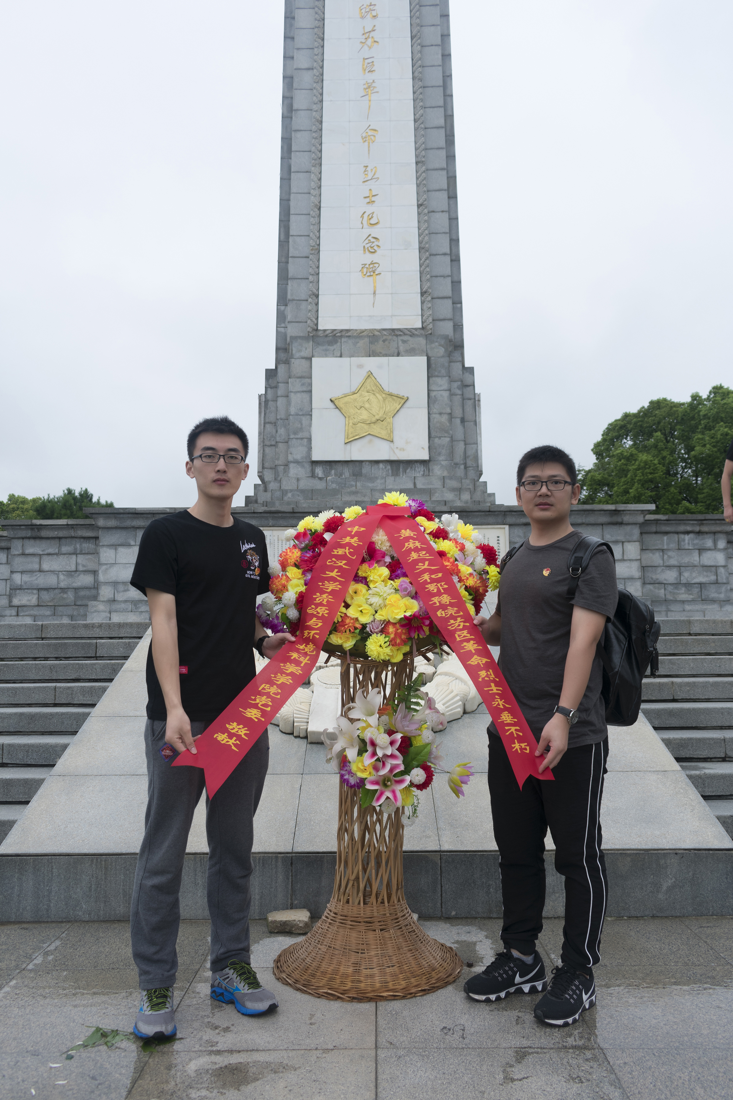 党委向黄麻起义和鄂豫皖苏区革命先烈进献鲜花,环境类2016级博士研究生党支部书记蒋惠梦同志、地学土管类2016级博士研究生党支部书记银超慧同志上前整理系于鲜花上的缎带,以示对革命先烈的尊敬。